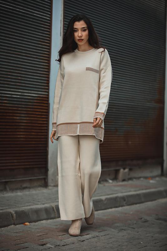 3-teiliges Damen-Trainingsanzug-Set in Ecru-Farbe