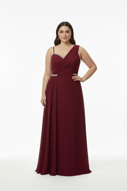 Große Größen Schulterfreies Abendkleid Mit Perlen – Bordeaux