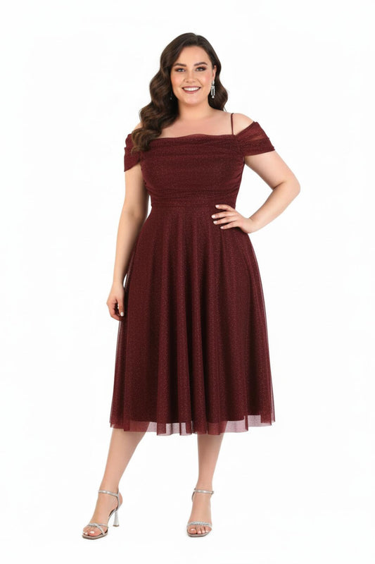Schulterfreies Midi - Kleid – Große Größen, Bordeaux
