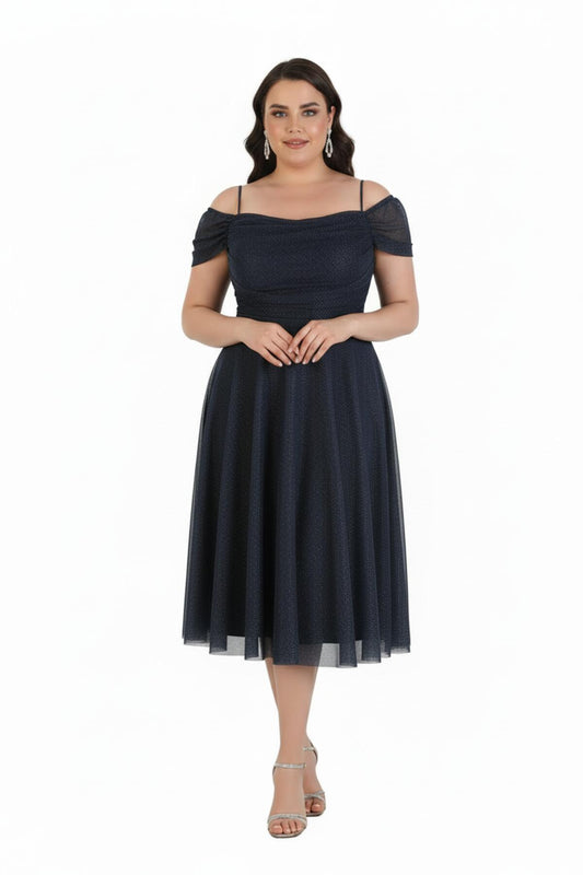 Midikleid In Großen Größen Mit Carmen - Ausschnitt — Marineblau