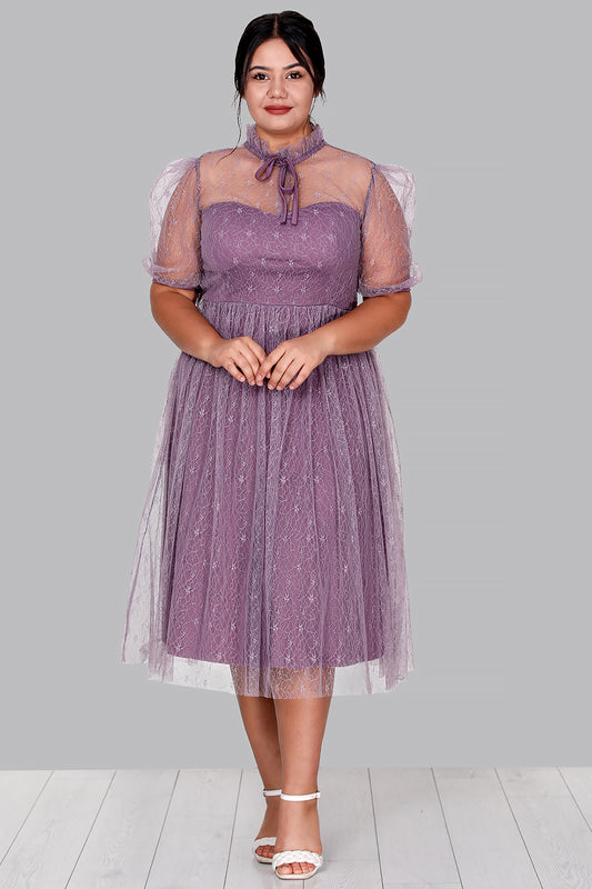 Grid Sizes Midi Size Evening Dress - NELB0588D5163LİL