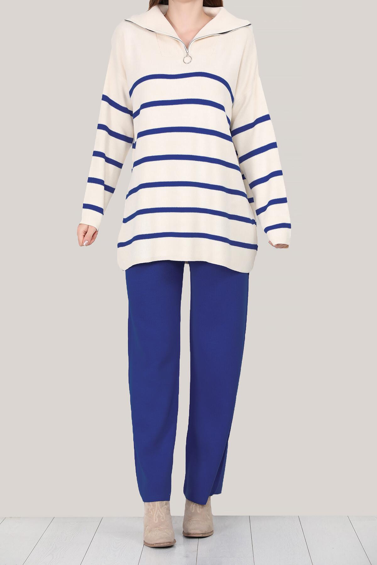 This two-piece set for women is made of knitted material and is one size fits all. The set consists of a round neck sweater and matching trousers. The outfit is perfect for autumn and winter and can be worn both in everyday life and on special occasions. The simple design is easy to combine and ensures a modern look.