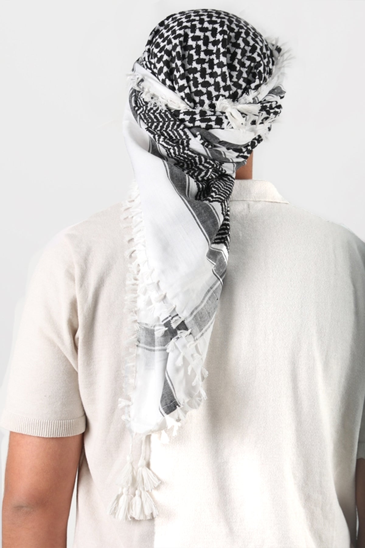PATIRTI KEFFİYEH -ARABISCHE PALESTIJNSE SJAAL -ARAFAT SJAAL - PLO SJAAL -DESERT SJAAL- SHEMAGH SJAAL - ZWART/WIT - NŞAL0501D1001SYH