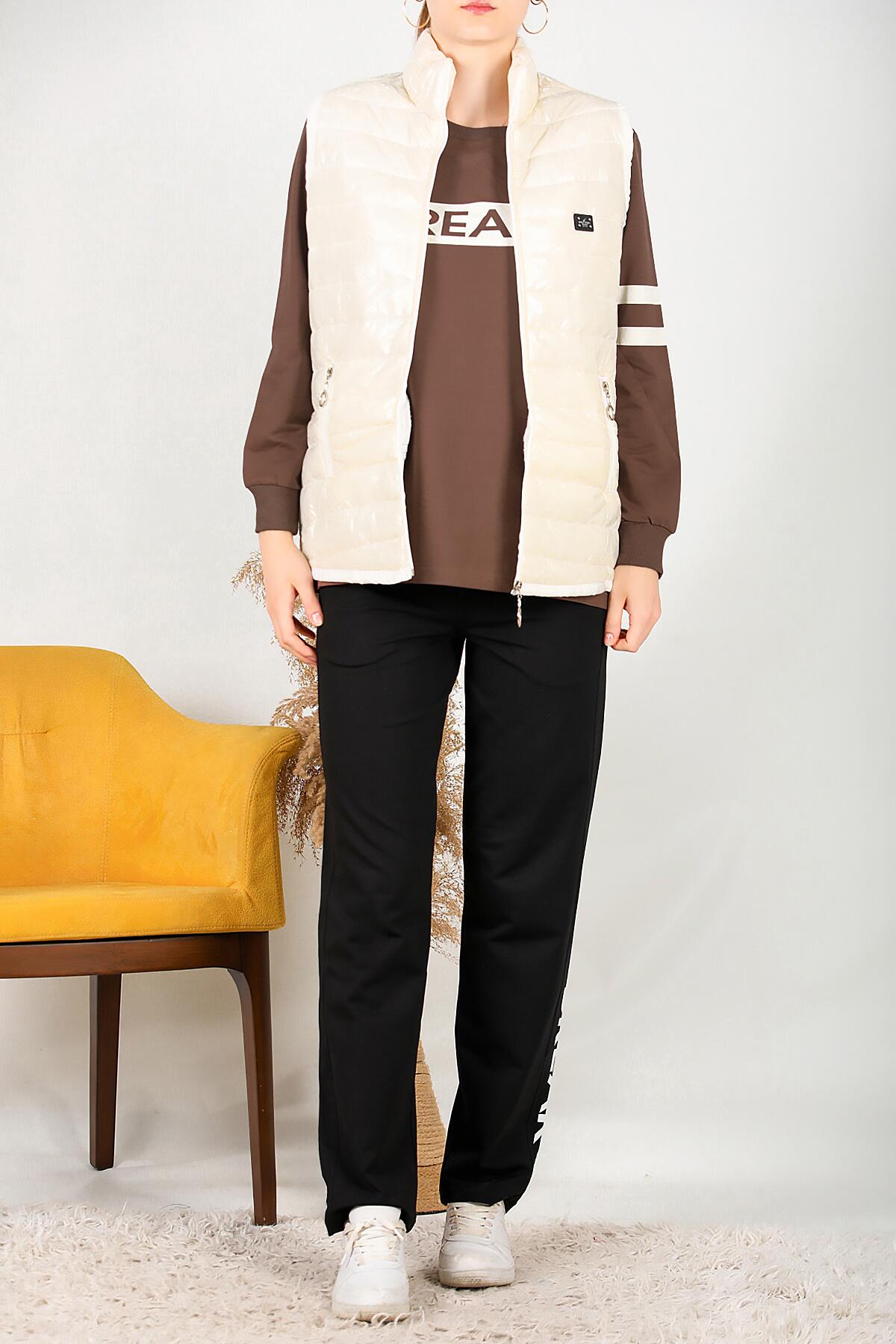 MODABOUT 3-teiliges Damen-Trainingsanzug-Set in Ecru-Farbe