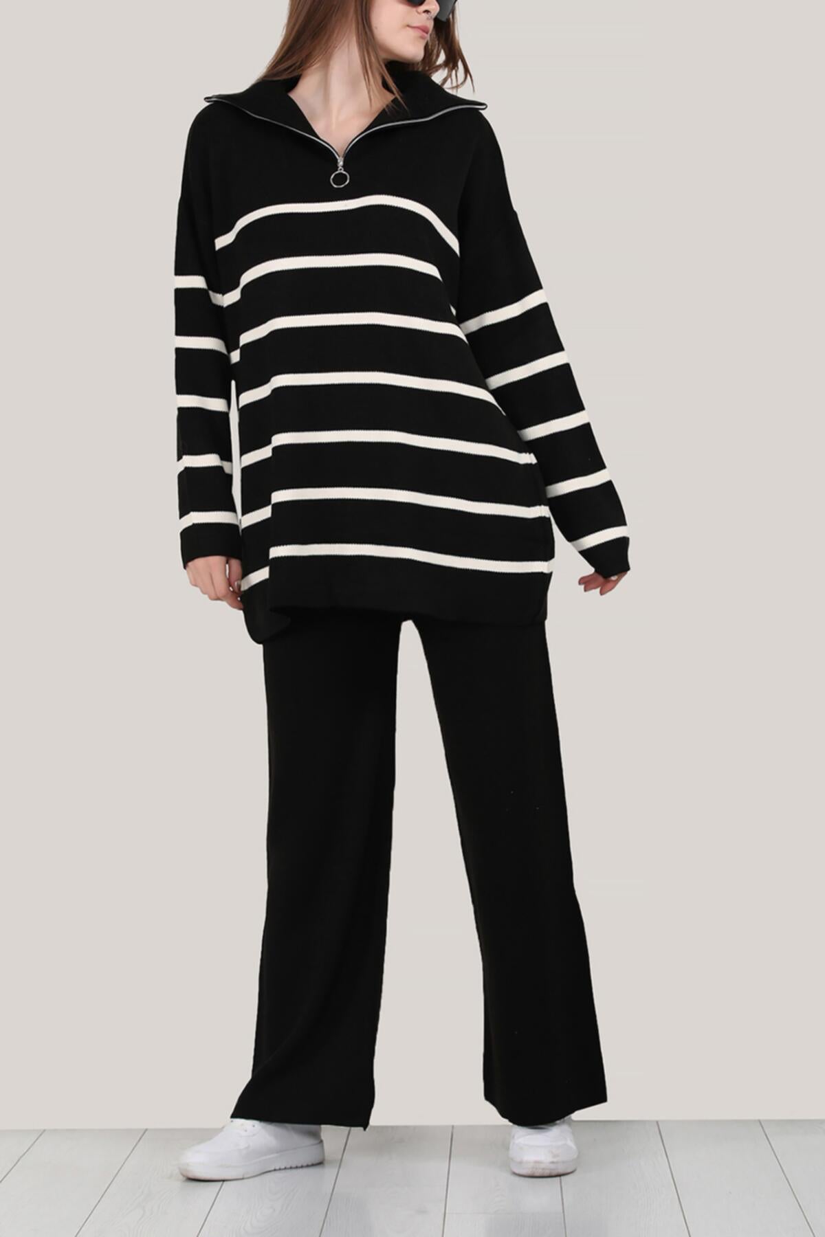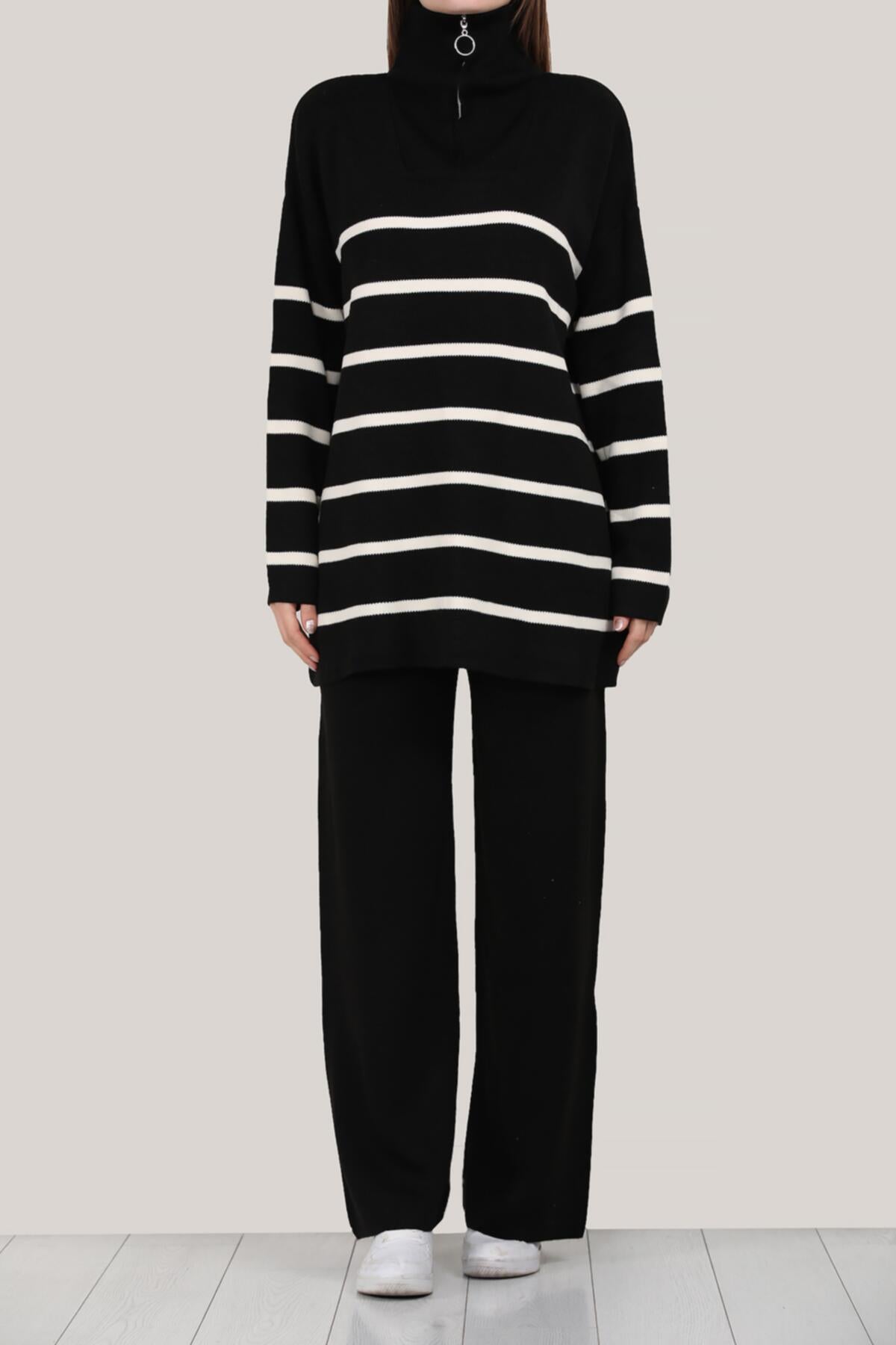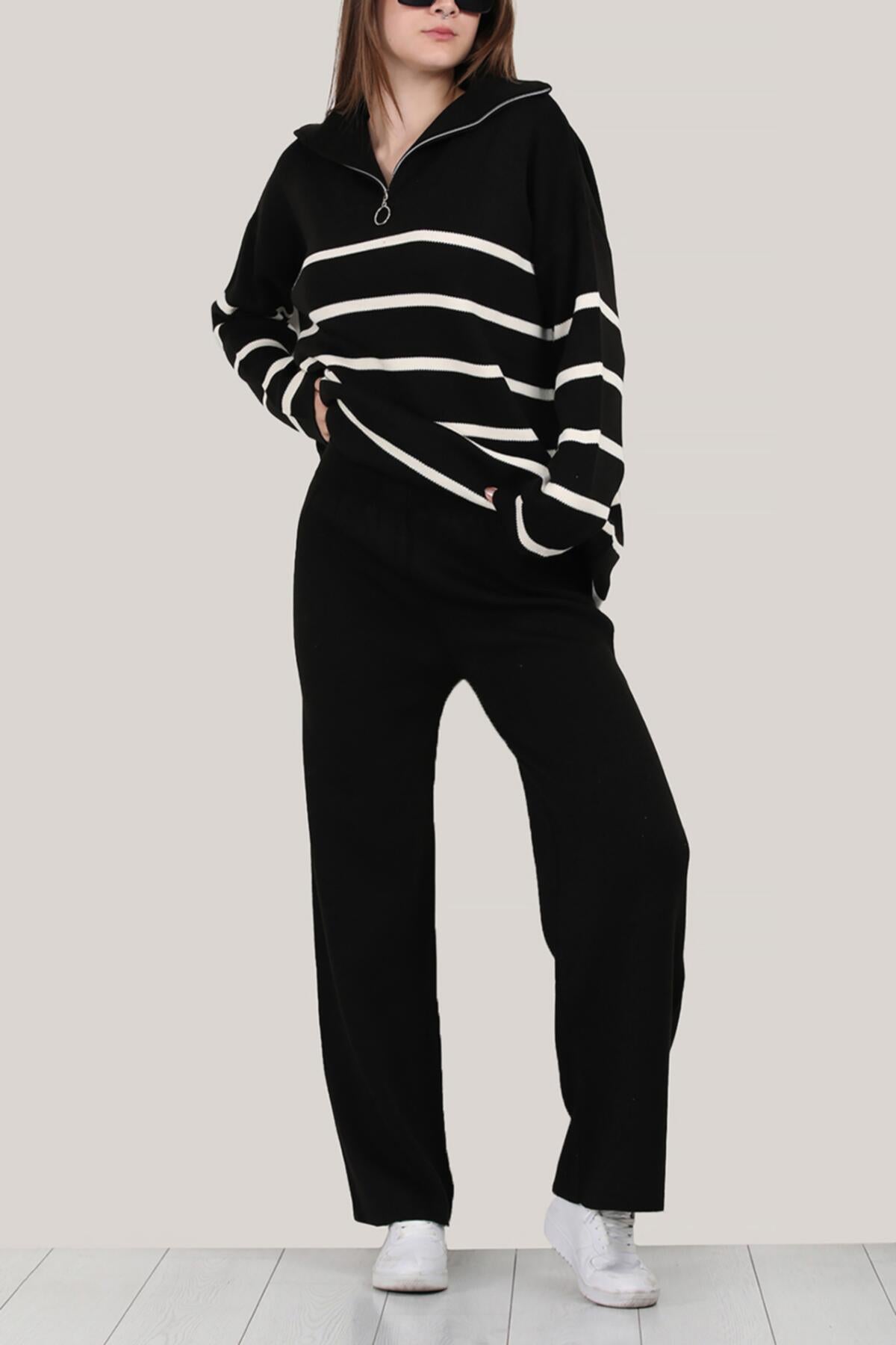 Dieser Zweiteiler für Damen ist aus gestricktem Material in gefertigt und hat eine Einheitsgröße. Das Set besteht aus einem Pulli mit Rundhalsausschnitt und passender Hose. Das Outfit ist perfekt für den Herbst und Winter geeignet und kann sowohl im Alltag als auch zu besonderen Anlässen getragen werden. Das schlichte Design lässt sich einfach kombinieren und sorgt für einen modernen Look.