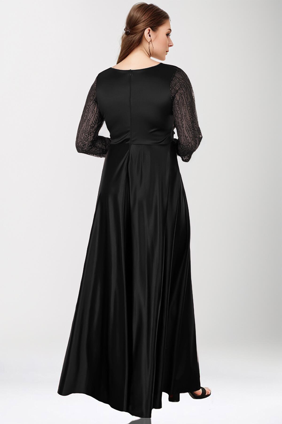Satijnen Avondjurk, Plusmaat — Zwart