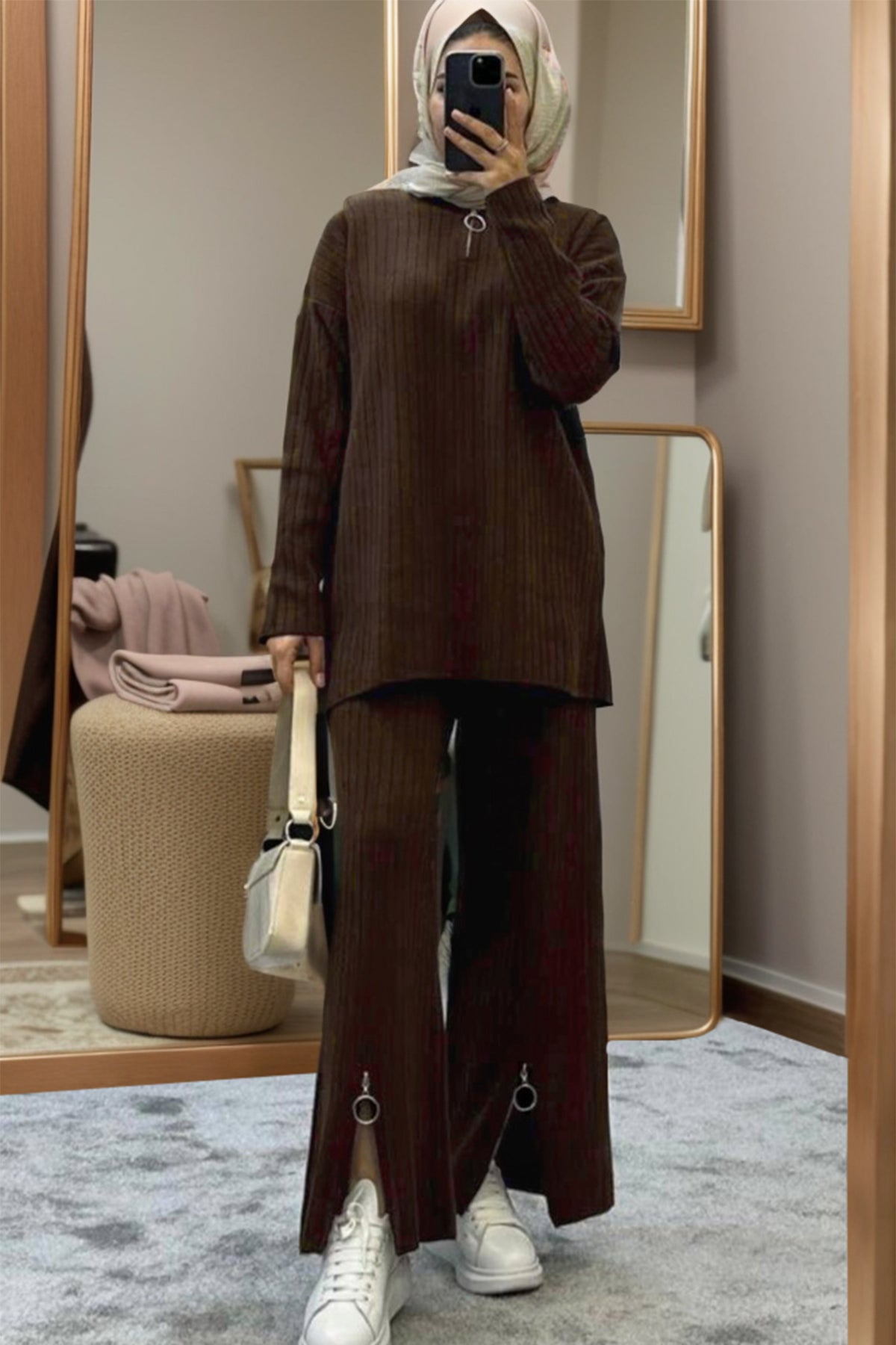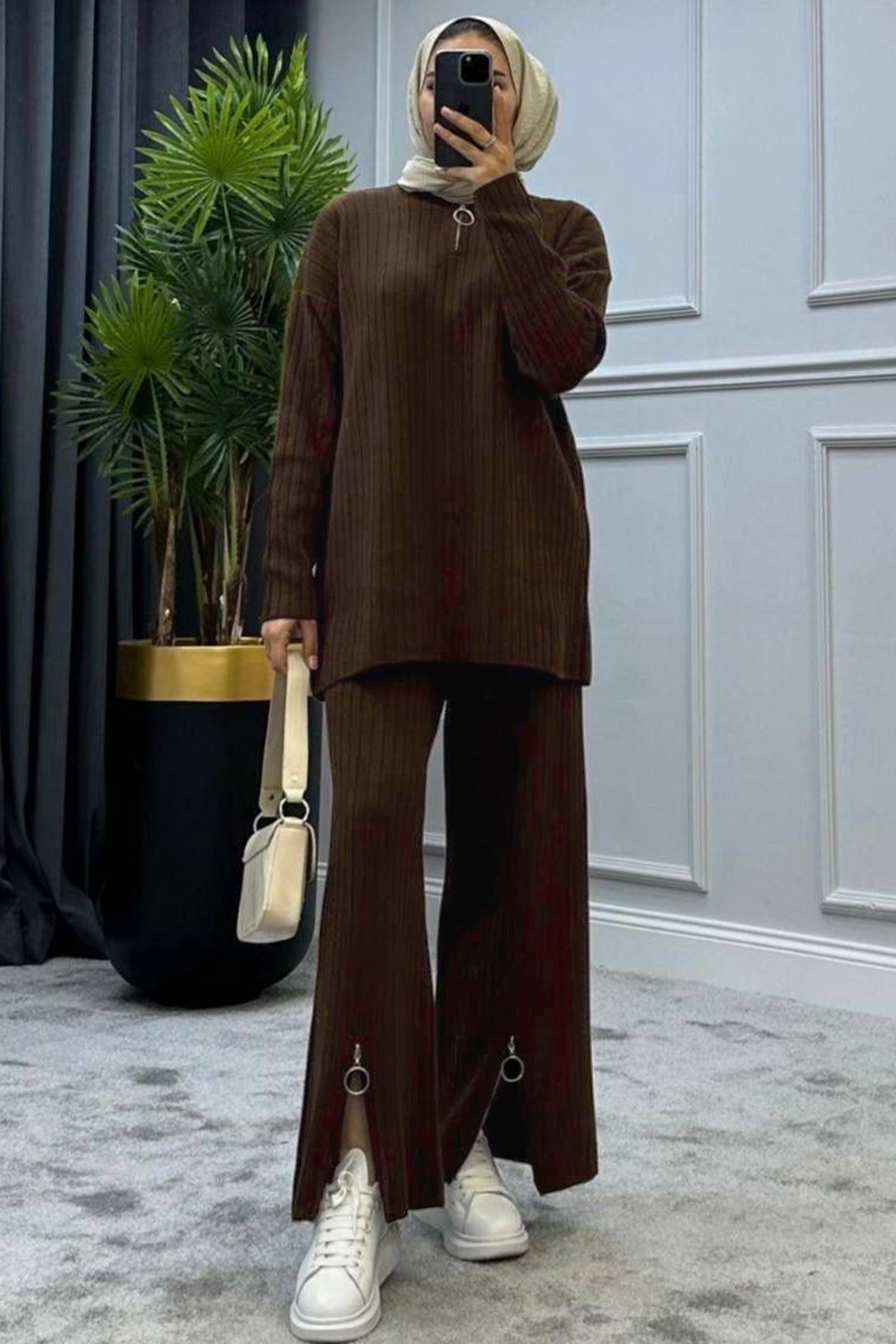 MODABOUT Gestrickter Zweiteiler in Braun Einheitsgröße - NTKM0007K9017KHV