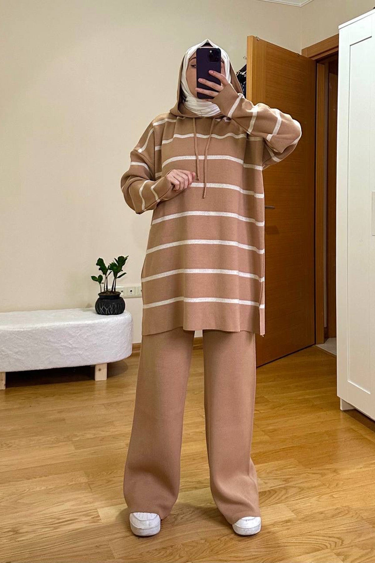 MODABOUT Gestrickter Zweiteiler in Braun Einheitsgröße - NTKM0007K2007BEJ