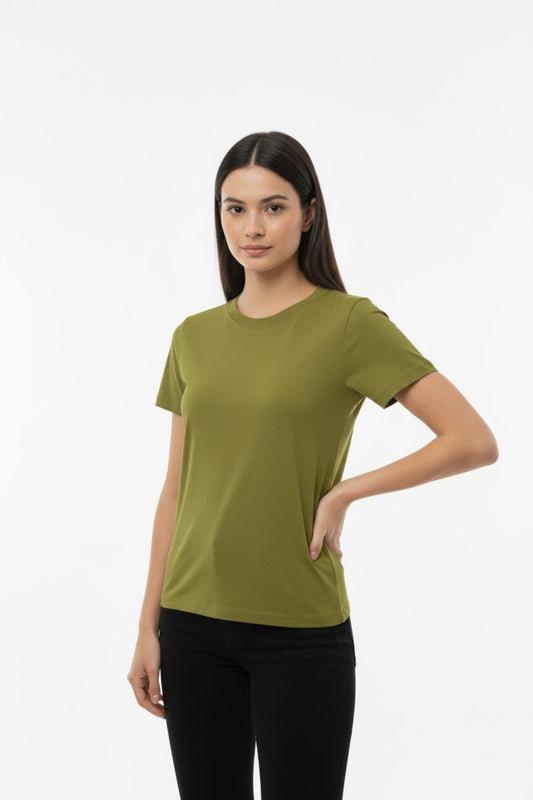 Kadın Bisiklet Yaka Bady Tshırt Yeşil