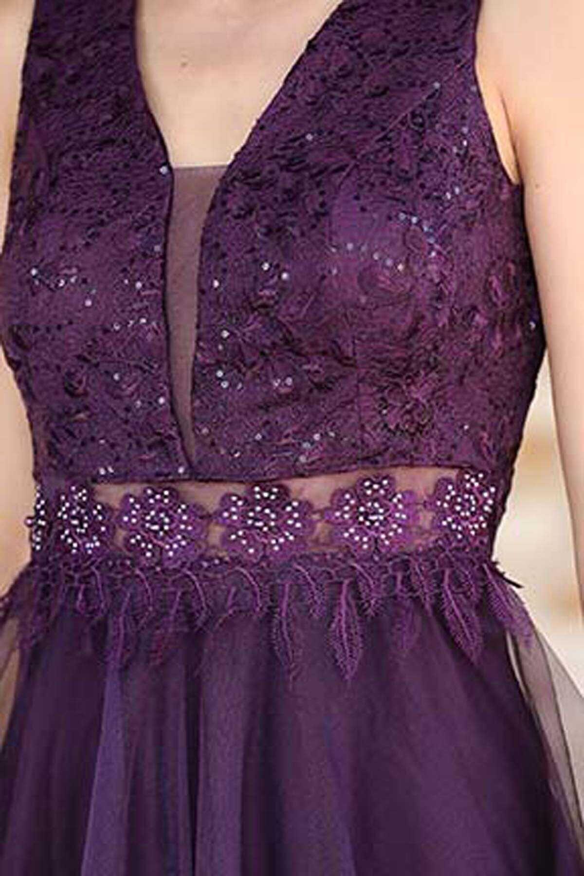 Dantel Kadın Abiye Mor