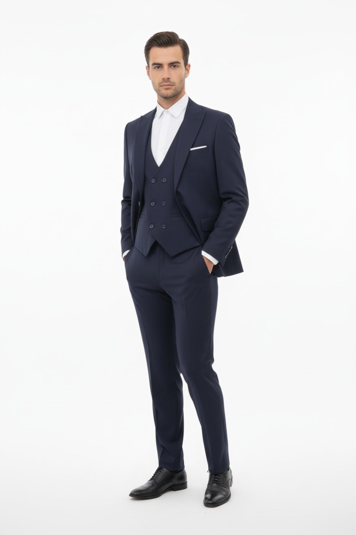 Zümra erkek 3lü takımı, lacivert rengiyle sofistike bir görünüm sunar. Ceket, yelek ve pantolon kombinasyonu, düğün, iş toplantıları ve resmi etkinlikler için ideal bir seçimdir. Kaliteli kumaş ve dikkat çekici tasarımı, her ortamda profesyonel ve şık bir imaj yaratır. Konforlu kesimi sayesinde bütün gün rahatlıkla giyilebilir. Klasik tarzı tercih edenler için mükemmel bir yatırımdır.
